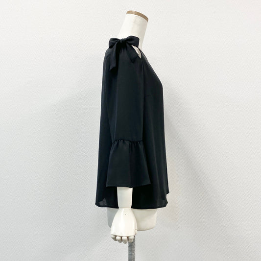 56h1 NEMIKA ネミカ オープンショルダーブラウス シフォン 長袖ブラウス フレアスリーブ レディース 女性用 9 ブラック ポリエステル100%u02t
