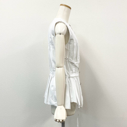 57h4 Jean Paul GAULTIER ジャンポールゴルチエ レースアップ ノースリーブブラウス シャツ ベスト レイヤード◎ チュニック丈 40 ホワイト コットン レディース
