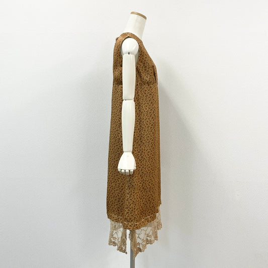 56h1 tricot COMME des GARCONS トリコ コムデギャルソン 花柄ワンピース ノースリーブワンピース レース刺繍 ドッキング サイズS ベージュ系 キュプラ レディース AD2005u02t
