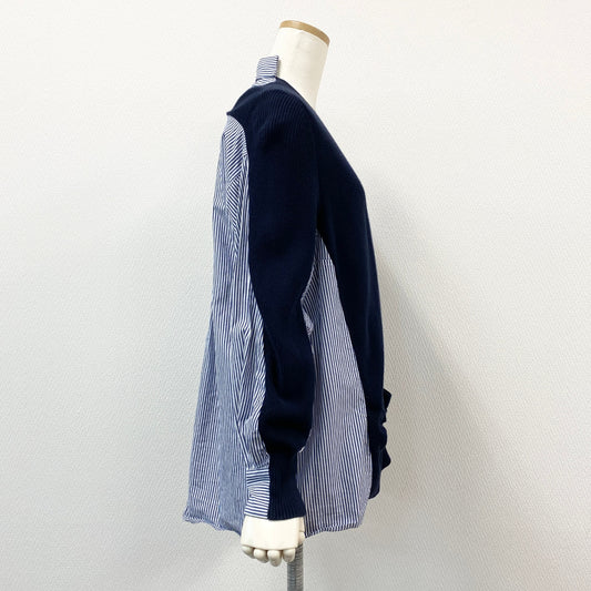 56h1 sacai サカイ ドッキング シャツカーディガン 17-02971 1 ネイビー 再構築 羽織 レディースt18r