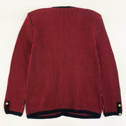 8h4 CHANEL シャネル ココマークボタン 4ポケット ニットカーディガン 羽織 金ボタン イタリア製 S レッド ネイビー コットン レディース