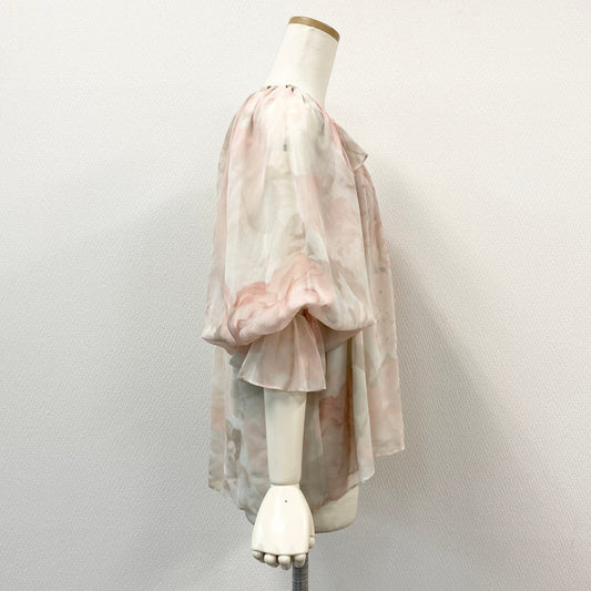 56h1 GRACE CONTINENTAL グレースコンチネンタル 長袖ブラウス ローズプリントトップス シフォンブラウス ドロストスリーブ レディース 女性用 13141122-0 2-36 ピンク シルク100%u02t