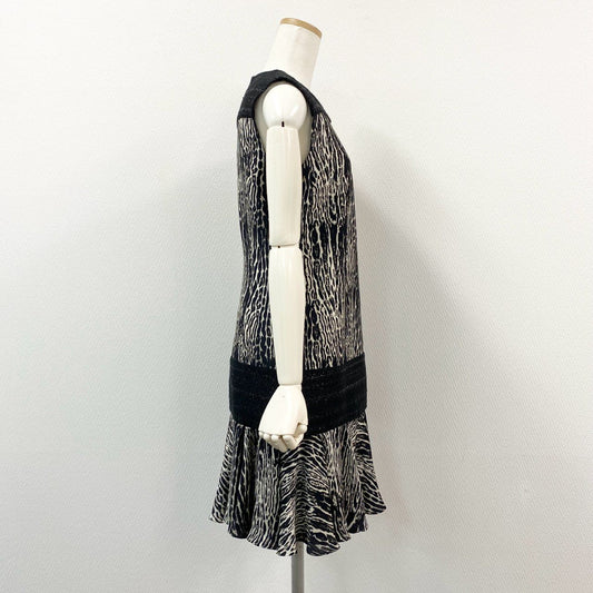 61g23 Giambattista Valli ジャンバティスタ ヴァリ イタリア製 レオパード柄 ツイード切替 ノースリーブワンピース ドレス 40 ブラック ベージュ系 レディース