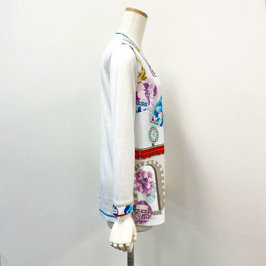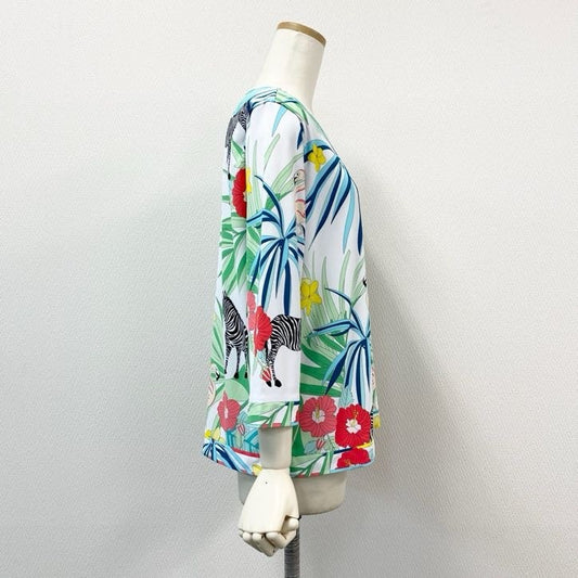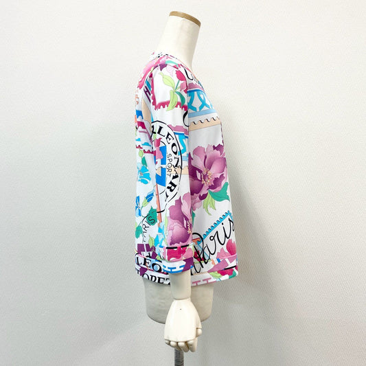 80g23 【美品】 LEONARD レオナール 長袖カットソー トップス ゼブラ アニマル柄 花柄 ストレッチ レディース 女性用 0538084 42 ホワイト マルチカラー