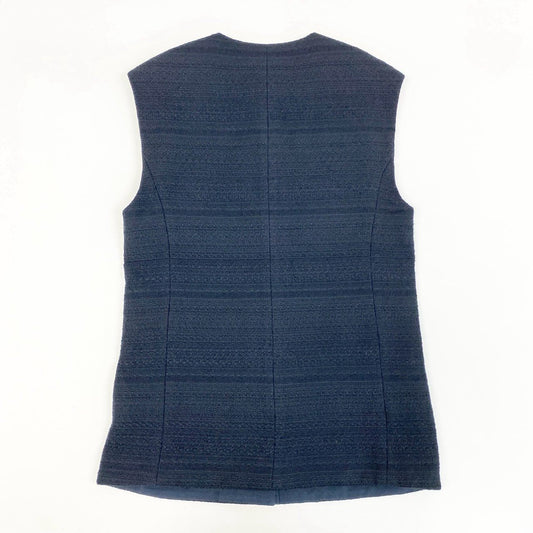 68g21 《美品》 ANAYI アナイ パールボタン ツイードベスト 34 ダークネイビー トップス 日本製 女性服