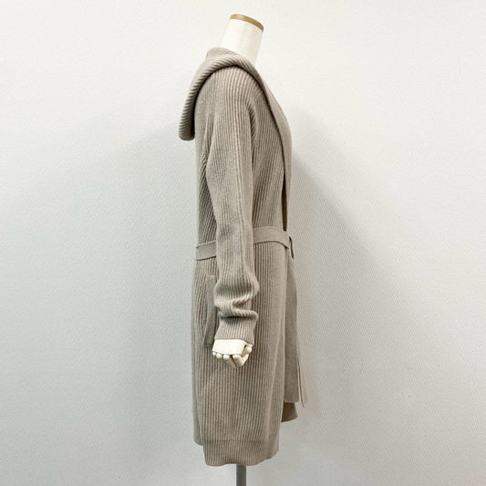 61g23 MAX MARA 白タグ フード ベルテッド ロングカーディガン ガウンコート ニット ウエストマーク グレージュ レディース