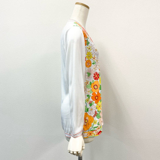 67g21-7 《極美品》 LEONARD レオナール カンカン素材 薄手カーディガン ニットカーディガン 美しい花柄プリント サイズ40 ホワイト マルチカラー レディース 日本製