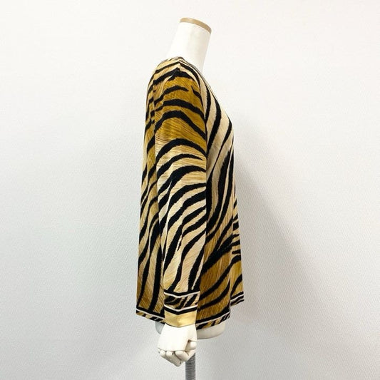 80g23 LEONARD レオナール カットソー トップス アニマル柄 シルク混紡 虎柄 ストレッチ レディース 女性用 0349103 L ブラウン系