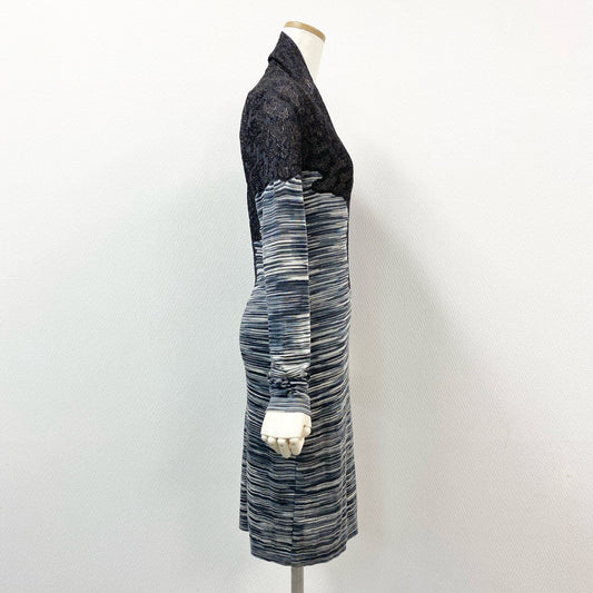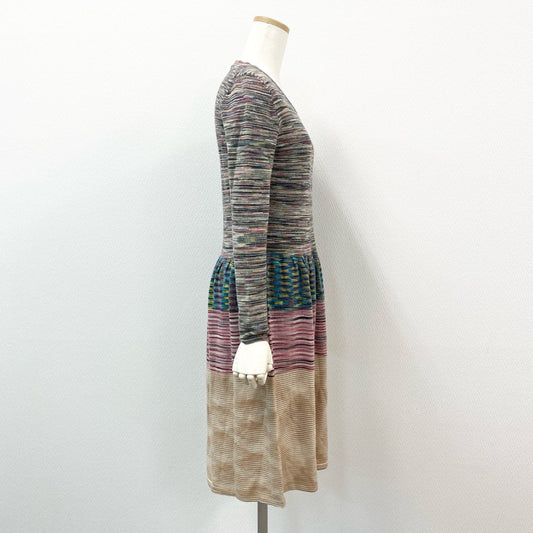 17f30 MISSONI ミッソーニ ラメレース切替 ニットワンピース 長袖ワンピース 膝丈ワンピース サイズ40 グレー系 レディース 女性用