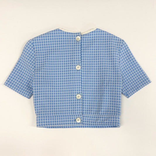 77f24 miu miu ミュウミュウ イタリア製 ギンガムチェック 半袖ニット トップス MJN172 XSサイズ ブルー レディース