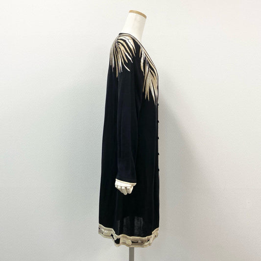71f27 LEONARD レオナール ロングカーディガン ニットカーディガン トップス ラインストーン 花柄 03577729 サイズ42 ブラック レディース
