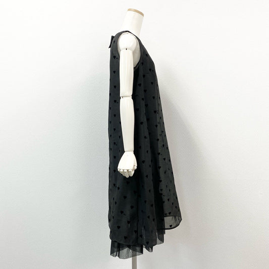 17f30 《極美品》 M’S GRACY エムズグレイシー カタログ掲載 ハートフロッキー チュールワンピース ノースリーブワンピース ドレスワンピース IT-411117 サイズ38 ブラック ポリエステル100% レディース 女性用