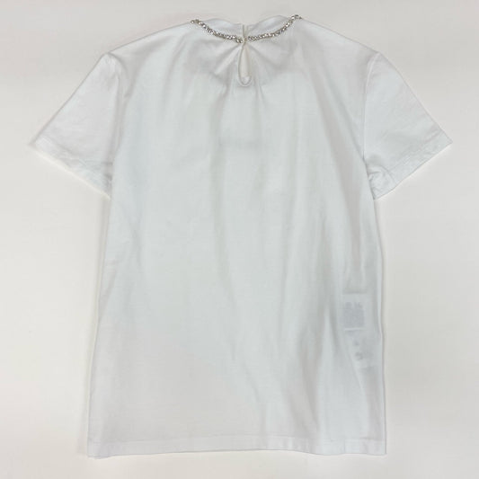77f24 miu miu ミュウミュウ ロゴプリント 半袖カットソー ラインストーン Tシャツ ショートスリーブ トップス MJN264 XSサイズ ホワイト コットン レディース