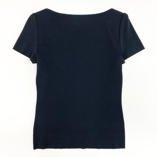 46f39 FOXEY BOUTIQUE フォクシーブティック ジェリービーン 半袖ニットセーター ワンポイントロゴ トップス 日本製 40 ネイビー レディース