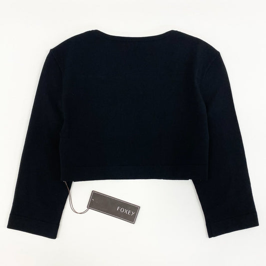 86f24 《極美品》 FOXEY フォクシー ニットカーディガン パーフェクトボレロ 五分袖 ロゴ刺繍 ショート丈 レディース タグ付き 28489 38 ブラック