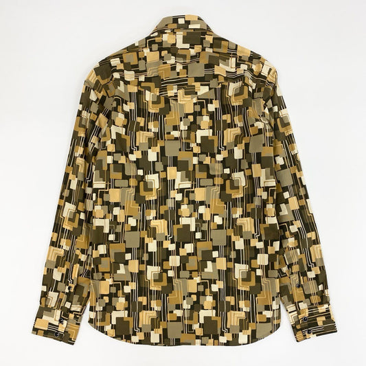 11f12 Maria Santangelo 長袖シャツ コットンシャツ 総柄 幾何学模様 柄シャツ メンズシャツ 男性用 イタリア製 37 ブラウン系 綿100%