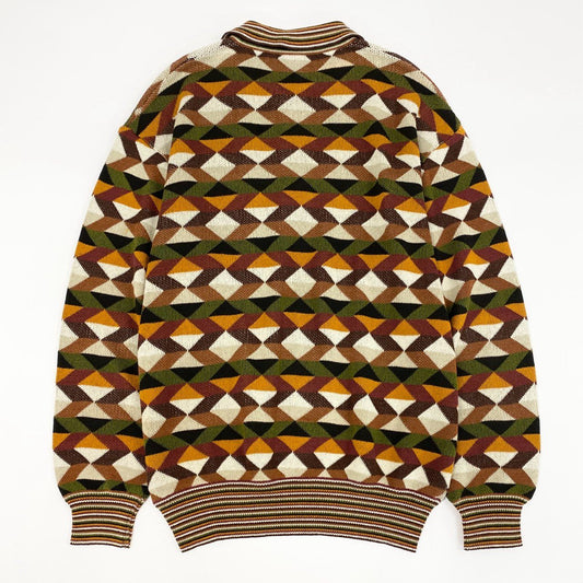 14f12 MISSONI ミッソーニ 幾何学 長袖 サマーニットポロシャツ M 茶系 プルオーバー イタリア製 紳士服