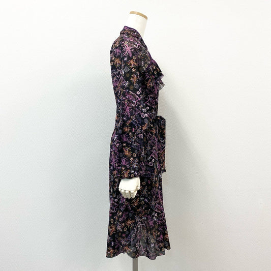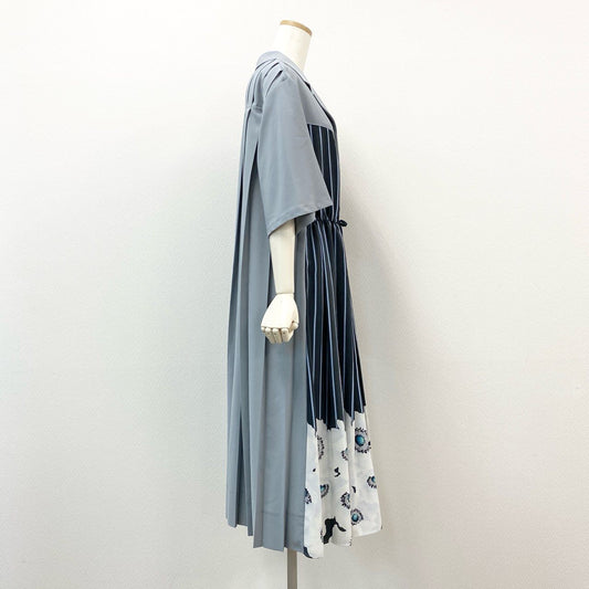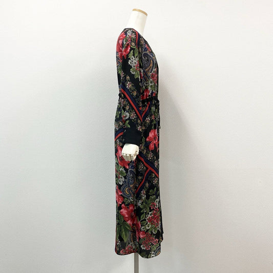 11f12 GRACE CONTINENTAL グレースコンチネンタル ハイウエスト ドローコード付き ボタニカルスカーフワンピース ボタンフライ サイズ36 レディース 羽織物