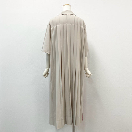 14f12-3 《未使用》定価¥33.000 ふりふ プリーツ加工 フラワープリント シャツワンピース F ベージュ ドレス タグ付き