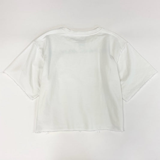 25f14 MM6 MAISON MARGIELA エムエムシックス メゾンマルジェラ クルーネック 半袖スウェット スエット カットオフ ロゴプリント 短丈 S32GU0133 Sサイズ ホワイト コットン