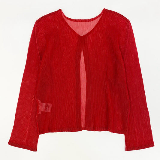 11f12 PLEATS PLEASE プリーツプリーズ 変形カーディガン ボレロカーディガン メッシュ生地 PP11-F0694 サイズ3 レッド ポリエステル100% レディース 日本製