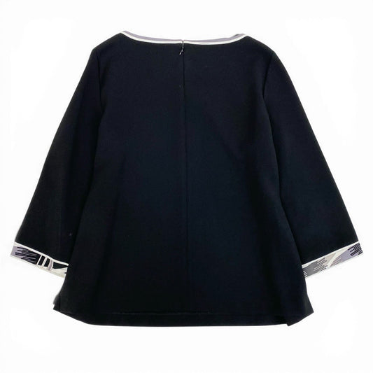 20a14 LEONARD FASHION レオナール 7分袖カットソー トップス カンカン素材 レディース 女性用 サイズ42 ブラックo07t