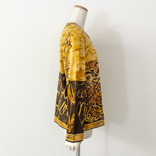 40i20《大きいサイズ》 LEONARD FASHION レオナール ファッション 日本製 長袖カーディガン 羽織 総柄プリント LL オレンジ ウール コットン