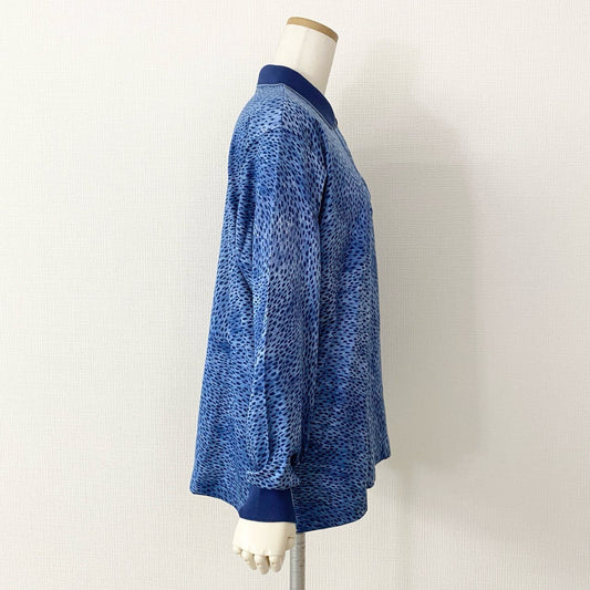 27i20 《大きいサイズ》 LEOMARD SPORT レオナール スポーツ 日本製 長袖ポロシャツ プルオーバー レオパード柄 総柄プリント LL ブルー コットン
