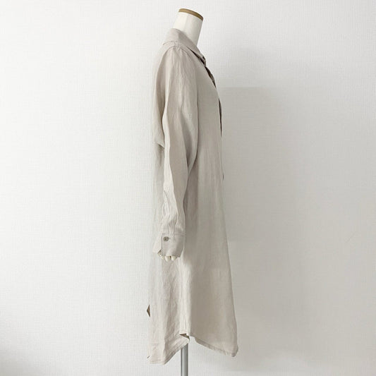 21i13 Yohji Yamamoto +NOIR ヨウジヤマモト プリュスノアール 長袖シャツワンピース ロングスリーブ 前開き 羽織 ロングシャツ 日本製 1 ベージュ リネン