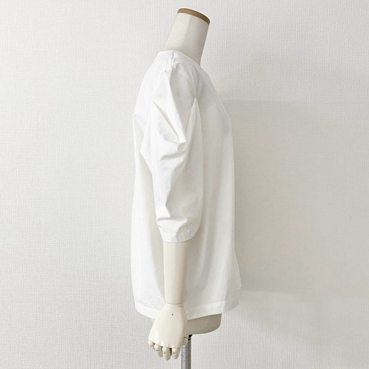 19i23 ADORE アドーア プレミアムコットンバックボタンカットソー ブラウス 7分袖 フェイクパール 531-8160604 サイズ38 ブラック レディース