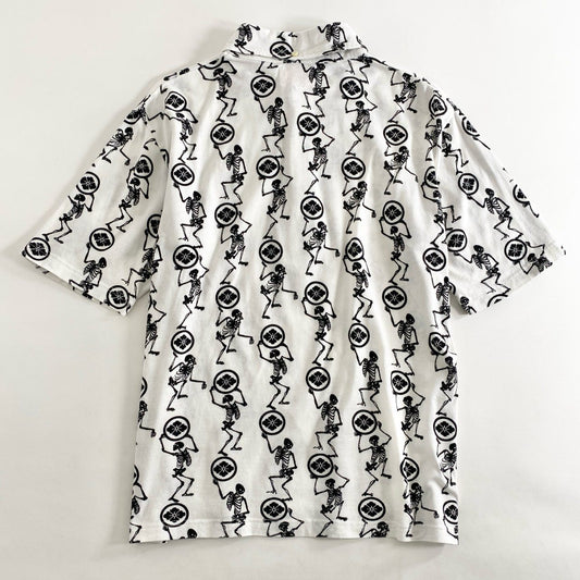 40i13 EVISU エヴィス 半袖ポロシャツ トップス 家紋/スカル 髑髏 カモメ刺繍 サイズ2 ホワイト×ブラック コットン メンズ