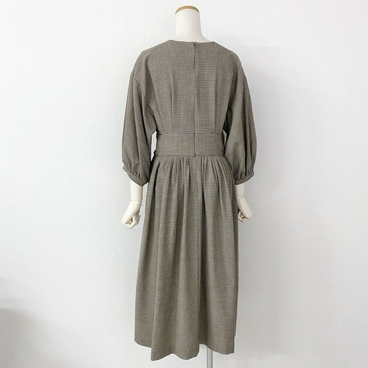 40i7 VERMEIL par IENA ヴェルメイユ パー イエナ フラノウエストシェイプパフスリーブワンピース 5分袖ワンピース ブラウン系 レディース 日本製