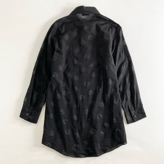 61i12 《美品》 LIMI feu リミフゥ ドット柄 リネン混 長袖シャツ ブラウス ロングスリーブ 日本製 リミヤマモト Sサイズ ブラック コットン リネン