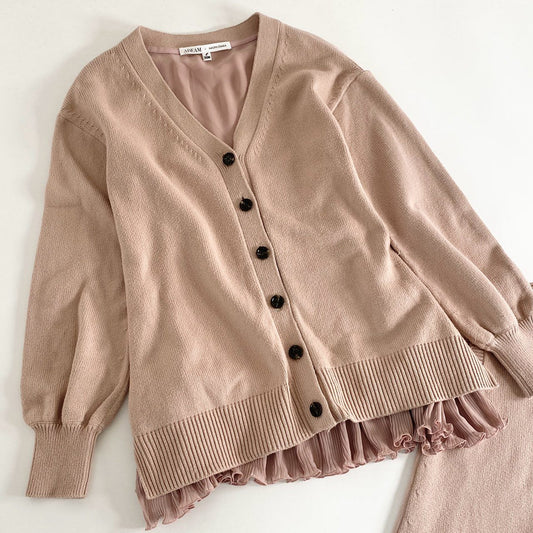 64i11 《2点セット》 ADEAM アディアム × NAOMI OSAKA モーヴオオサカ アンサンブル ドッキング カーディガン × ニットトップ 41779 / 41780 S ピンク プリーツフリル 日本製