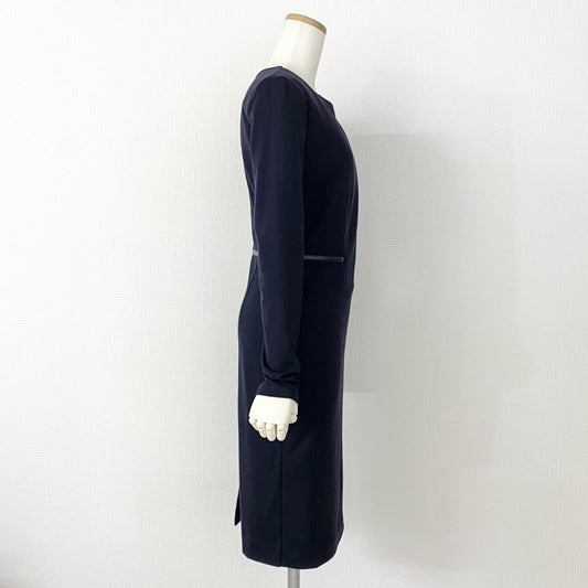 39h21 MaxMara マックスマーラ 白タグ イタリア製 長袖ワンピース ドレス パイピング ロングスリーブ 40 ネイビー ウール