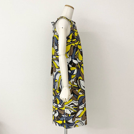 52h13 S Max Mara エス マックスマーラ ノースリーブ ボウタイワンピース フラワープリント 922137026 38 ブラウン イエロー ドレス DRESS モロッコ製