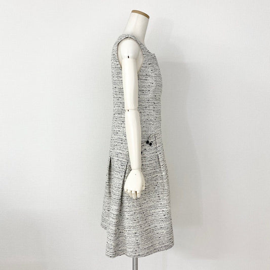 50h11 日本製 Rene ルネ イタリア製生地 ツイードワンピース ノースリーブワンピース ドレスワンピース 6916280 サイズ36 ホワイト系 レディース