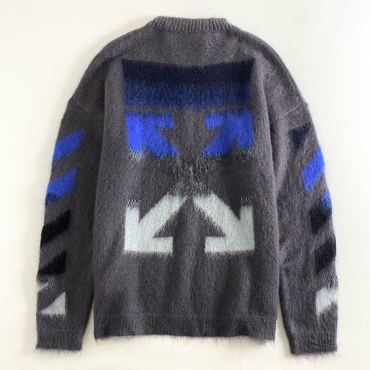 80h12 OFF-WHITE オフホワイト ブラッシュドモヘア混ニット バックロゴクルーネックセーター オーバーサイズ OMHA036E19B02024 Sサイズ グレー モヘヤ