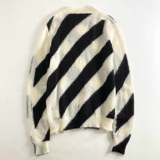 80h12 OFF-WHITE オフホワイト MOHAIR DIAG SWEATER モヘアニット セーター クルーネック プルオーバー OMHE028E19B02002 Sサイズ ホワイト ブラック モヘヤ