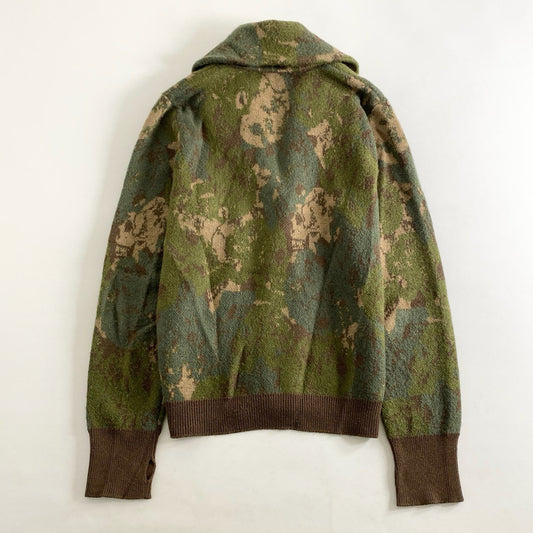80h12 Gabriele Pasini ガブリエレパジーニ イタリア製 ショールカラー ニット カーディガン ローゲージ 総柄 長袖 ロングスリーブ Mサイズ カーキ ウール