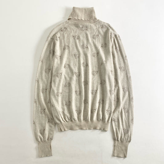 80h12 Gabriele Pasini ガブリエレパジーニ イタリア製 タートルネック ニット セーター トップス ロングスリーブ 総柄 Lサイズ ブラウン系 ウール ヴィスコース