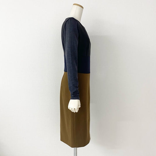 52h13 《未使用保管品》定価¥91,000 Max Mara マックスマーラ 袖切替 ウールワンピース 38 グレー ブラウン ドレス イタリア製