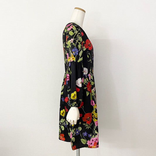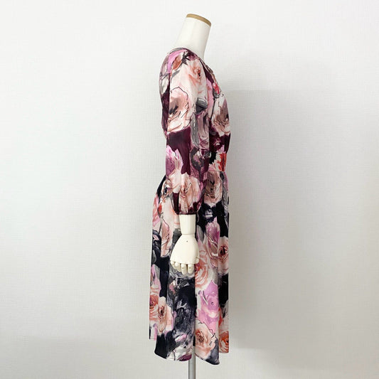 28h10 《美品》 blugirl ブルーガール ブルマリン 花柄ワンピース 膝丈ワンピース ビジュー装飾 サイズ38 マルチカラー ポリエステル100% レディース