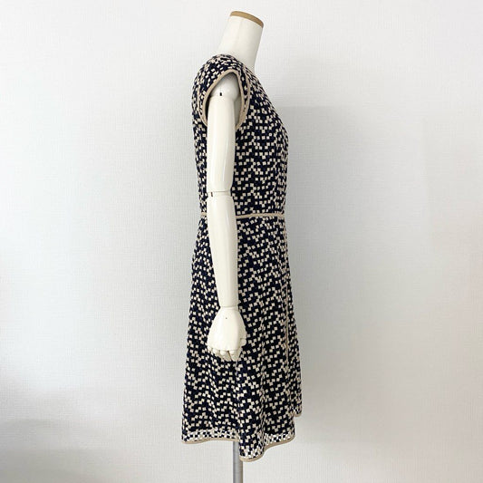 52h10 EPOCA エポカ フレンチスリーブ パイピングワンピース 40 ネイビー ベージュ ドレス DRESS