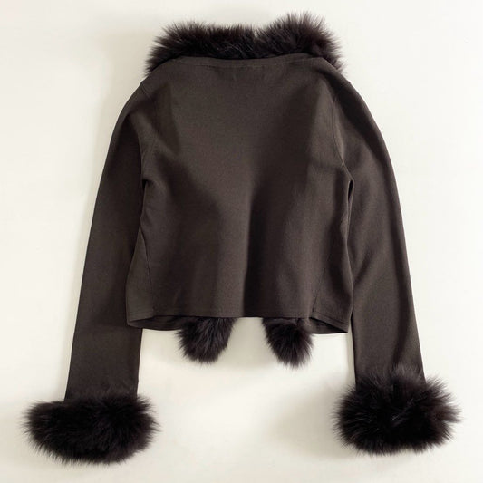 54h10 《極美品》定価¥35,700 EPOCA エポカ フォックスファー ショートカーディガン 40 ダークブラウン ボレロ