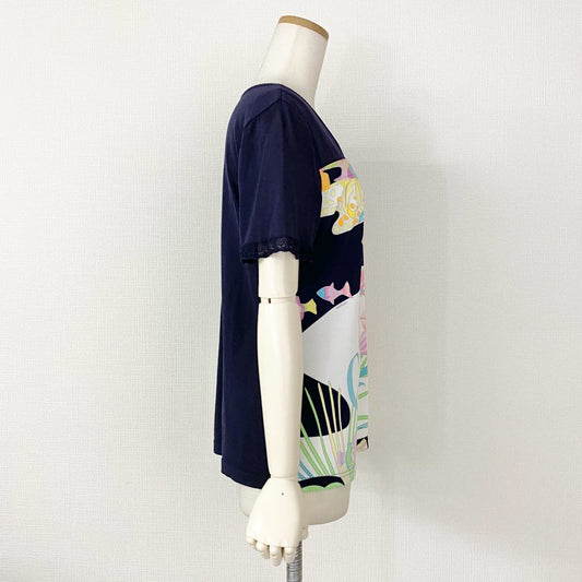 54h10 LEONARD SPORT レオナール カンカン素材切替 半袖ニット カットソー トップス 0578706 サイズ40 マルチカラー レディース 日本製