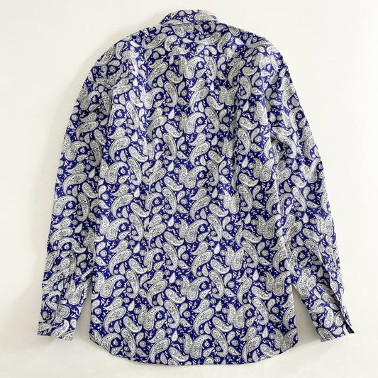 28h10 《美品》 イタリア製 Brioni ブリオーニ 長袖シャツ ドレスシャツ サイズⅡ ペイズリー柄 ブルー×ホワイト コットン100% メンズ