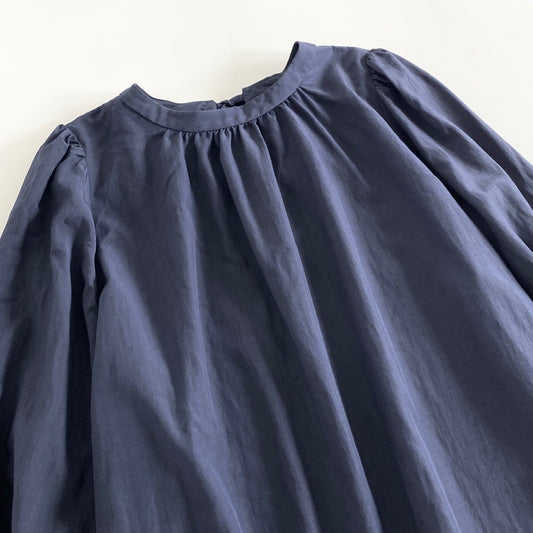 20h7 定価¥15,400 Lounge dress ラウンジドレス 2WAY スキッパーブラウス ベルスリーブ F ネイビー シャツ ハイネック リボン