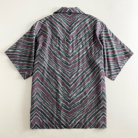 59g26 DESCENDANT ディセンダント 日本製 オープンカラーシャツ 開襟 ショートスリーブ 半袖シャツ トップス 1 Sサイズ相当 パープル グリーン