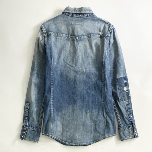 26g17 1piu1uguale3 ウノピュウウノウグァーレトレ レインボーステッチ ダメージ加工 デニムシャツ 長袖シャツ サイズV インディゴ メンズ
